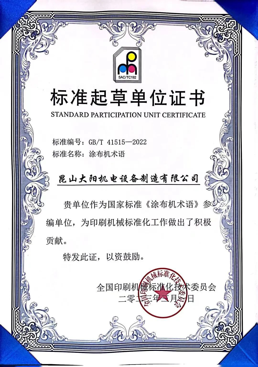 據(jù)了解,大陽機(jī)電是《涂布機(jī)國(guó)家標(biāo)準(zhǔn)》的起草單位、國(guó)家高新技術(shù)企業(yè)、江蘇省專精特新中小企業(yè)、蘇州市高精密涂布機(jī)工程研發(fā)中心。