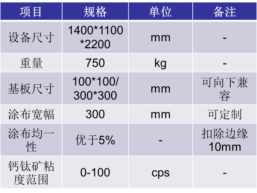 量產(chǎn)型鈣鈦礦涂布機技術(shù)規(guī)格