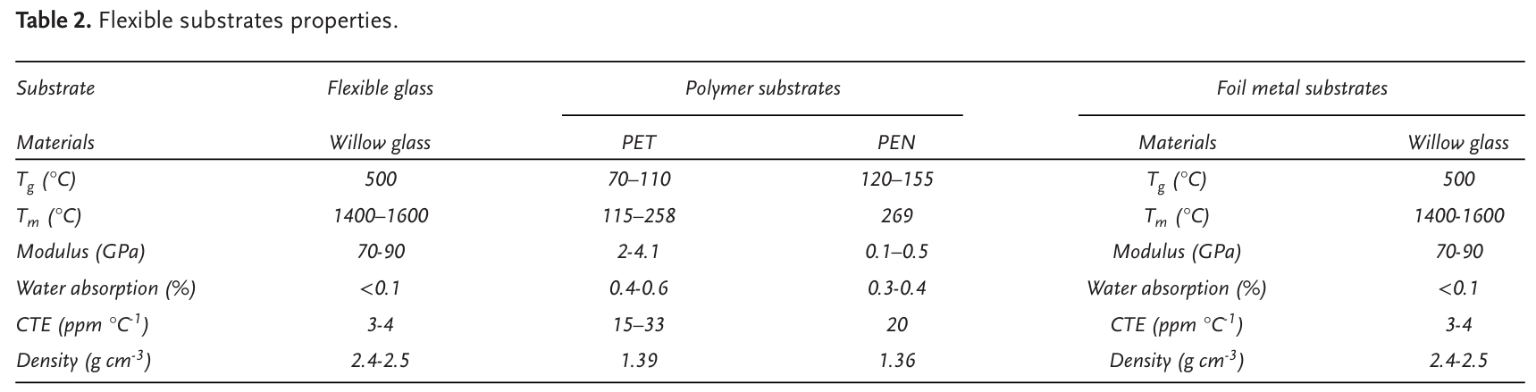 表2 柔性基底特性