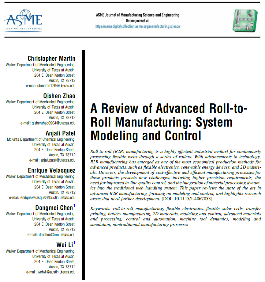 先進R2R涂布制造技術是柔性電子產(chǎn)品等先進材料制造的核心,而系統(tǒng)建模與控制則是確保其實現(xiàn)高精度、高效率和高質量生產(chǎn)的關鍵技術保障。中國涂布技術研究翻譯《A Review of Advanced Roll-to- Roll Manufacturing: System Modeling and Control》(譯名:先進卷對卷制造綜述:系統(tǒng)建模與控制)。文章綜述了先進R2R制造技術的現(xiàn)狀,重點介紹了系統(tǒng)建模與控制,并展望了未來的研究方向。