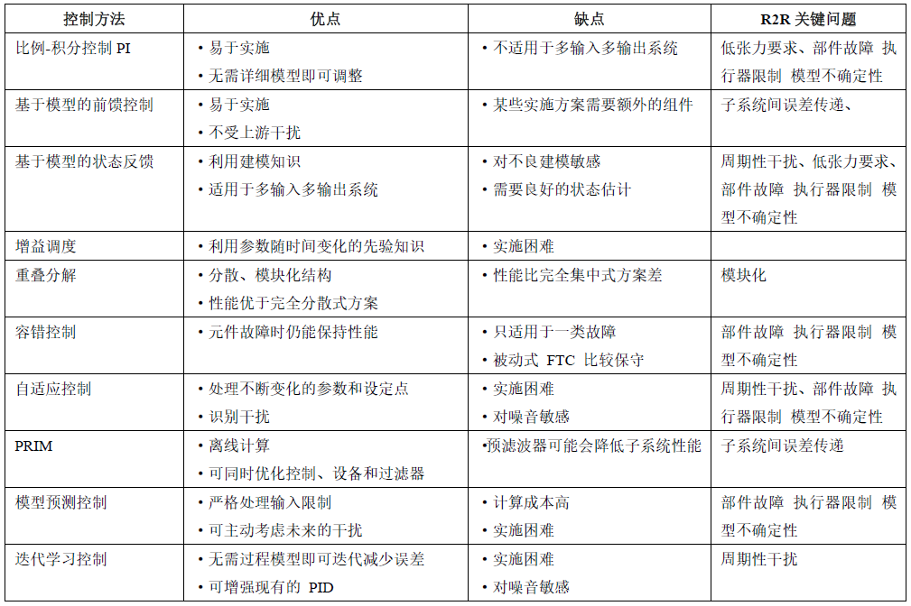 表2 R2R系統(tǒng)面臨主要挑戰(zhàn)的控制方法及其優(yōu)缺點