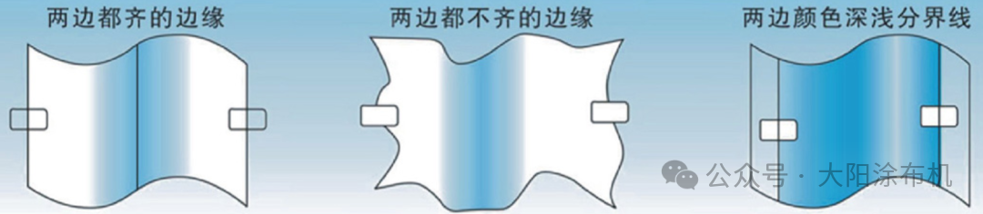 產(chǎn)生原因:基材進(jìn)入涂布裝置前已經(jīng)發(fā)生位置偏移,造成涂布過程出現(xiàn)質(zhì)量缺陷;還有就是涂布輥(或刮刀)的安裝中心線與基材運(yùn)行基準(zhǔn)線未對準(zhǔn);基材在涂布輥上因局部張力不均產(chǎn)生微量打滑或橫向漂移;以及涂布液在模頭唇口壓力分布不均,對運(yùn)動的基材產(chǎn)生不對稱的橫向流體壓力等情況。
