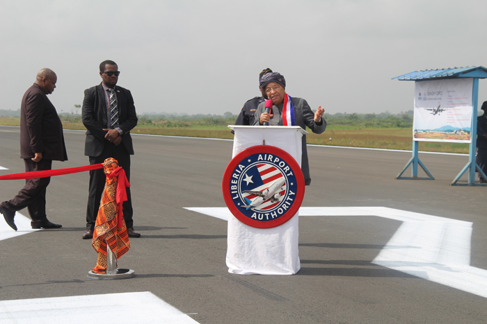上午十點(diǎn)半,竣工典禮準(zhǔn)時(shí)開始,瑟利夫總統(tǒng)在典禮上發(fā)表了重要講話。瑟利夫總統(tǒng)對中國電建的施工質(zhì)量予以高度贊賞,并對中國電建為改善當(dāng)?shù)鼗A(chǔ)設(shè)施條件所付出的辛勤勞動(dòng)表示感謝。他指出,利比里亞羅伯茨國際機(jī)場跑道升級項(xiàng)目的竣工為實(shí)現(xiàn)利比里亞的“現(xiàn)代化革命”目標(biāo)邁出了重要一步。